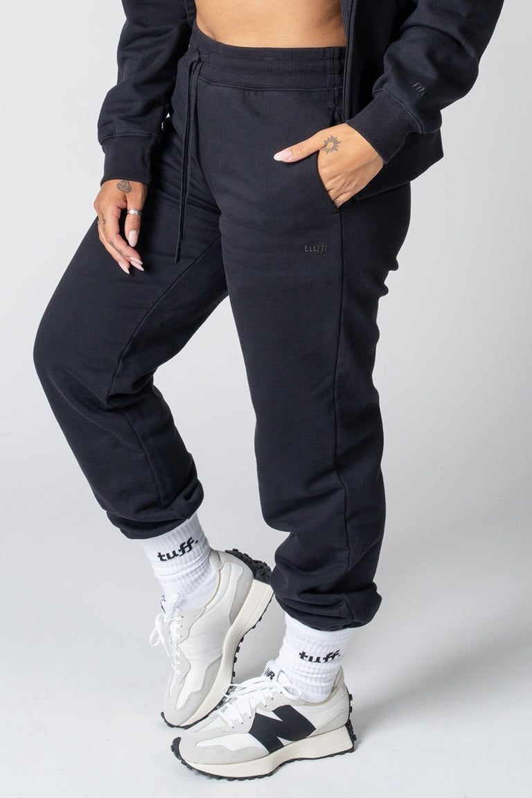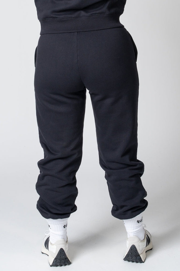 Description: a heavyweight flat face cotton fleece jogger featuring elastic cuffs and waistband with a drawcord for an adjustable fit, inseam side pockets, and a plush cotton back